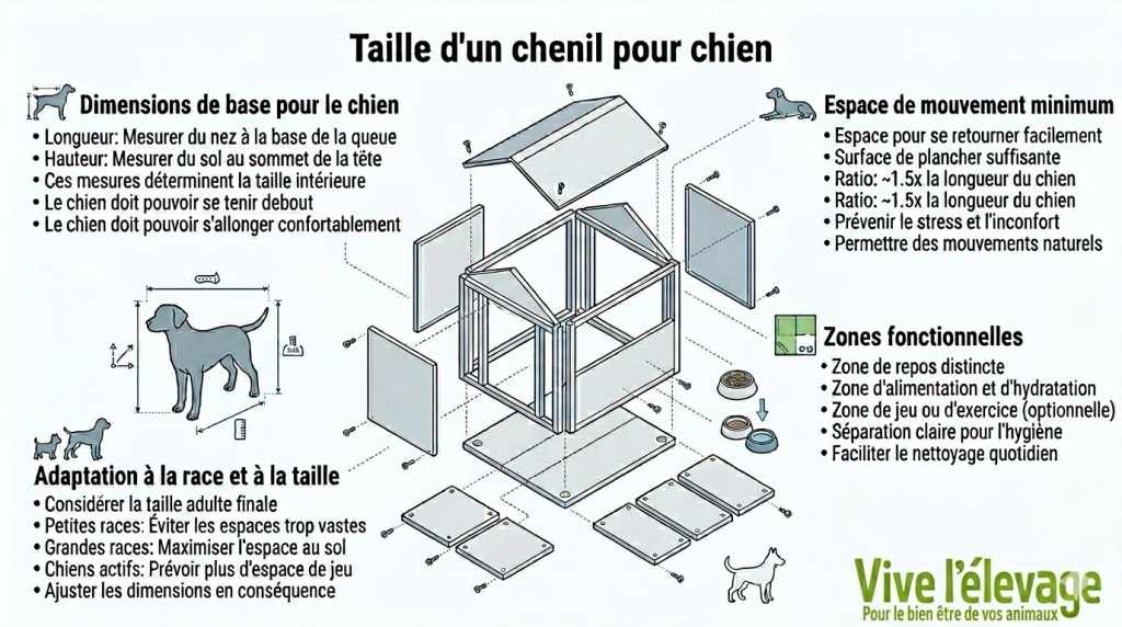 Un chenil bien proportionné n’est pas une simple cage, c’est un véritable espace de vie où votre chien doit pouvoir bouger, s’étirer et se reposer sans jamais se sentir à l’étroit. Chez Vive l’élevage, nous aidons les propriétaires et les professionnels à créer des espaces sains qui respectent vraiment les besoins de l’animal.